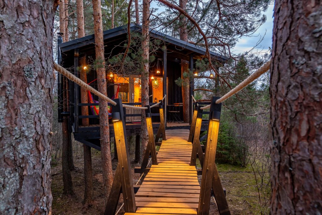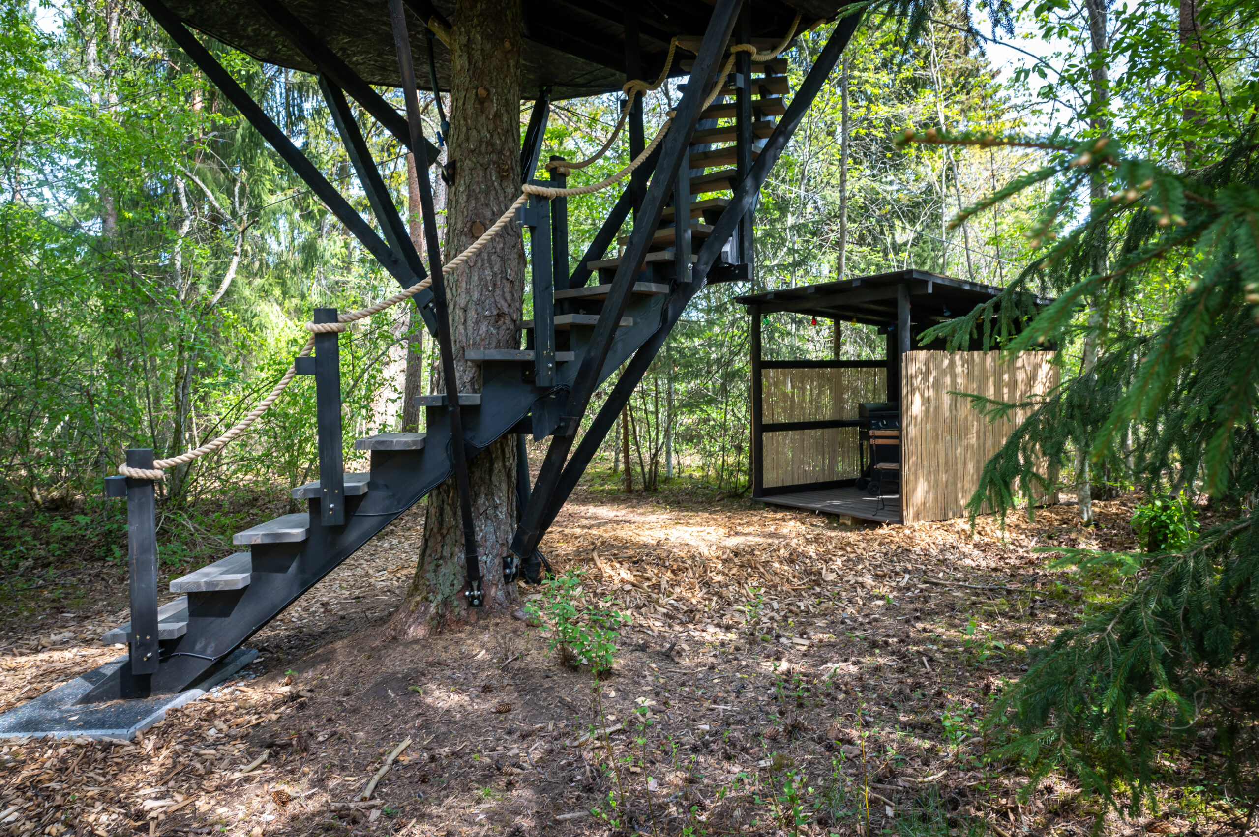 Cozy accommodation for two in the treetops, nestled in the forest. Our treehouse is a place where you can relax and enjoy nature. To reach the house, you need to walk 200 meters along a winding park path. Private relaxation for two people. There is also a steam sauna at your house for your private use.