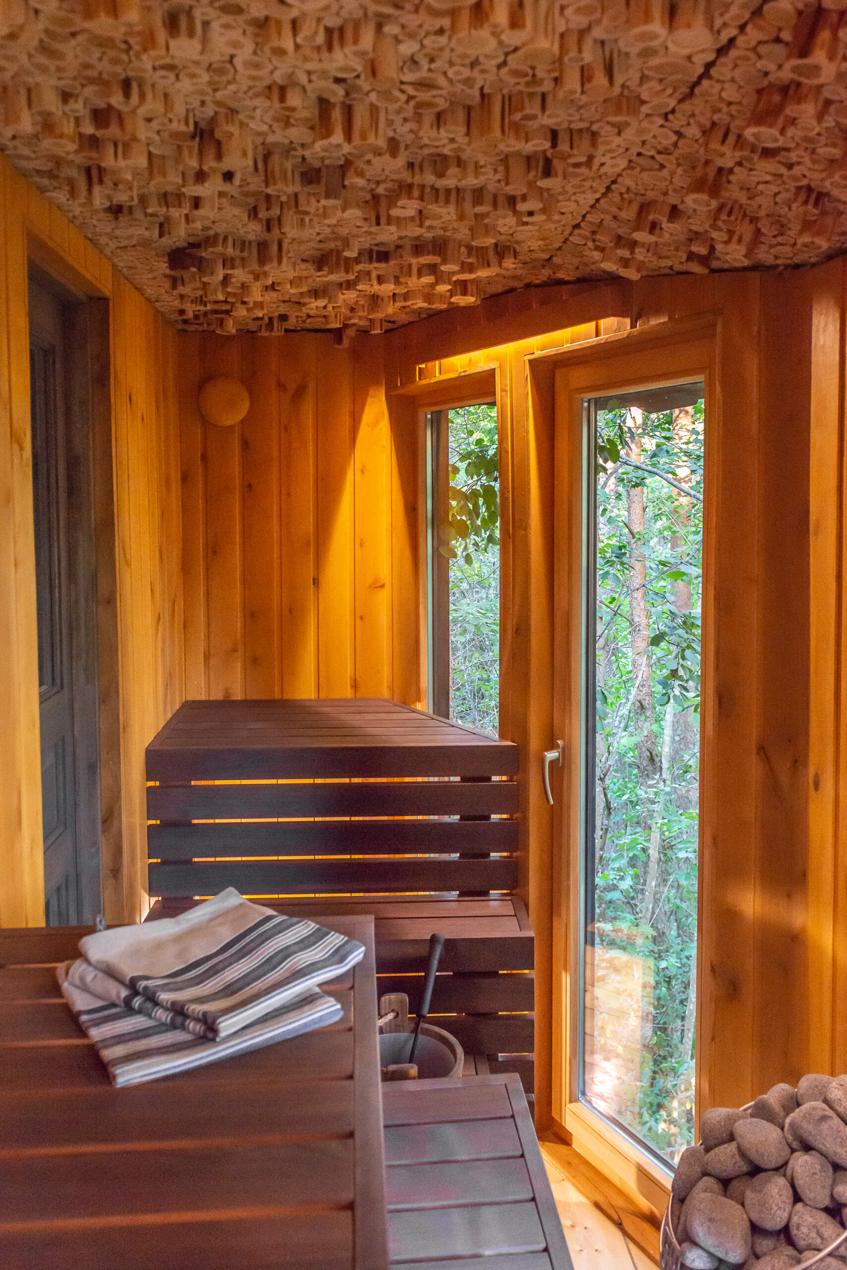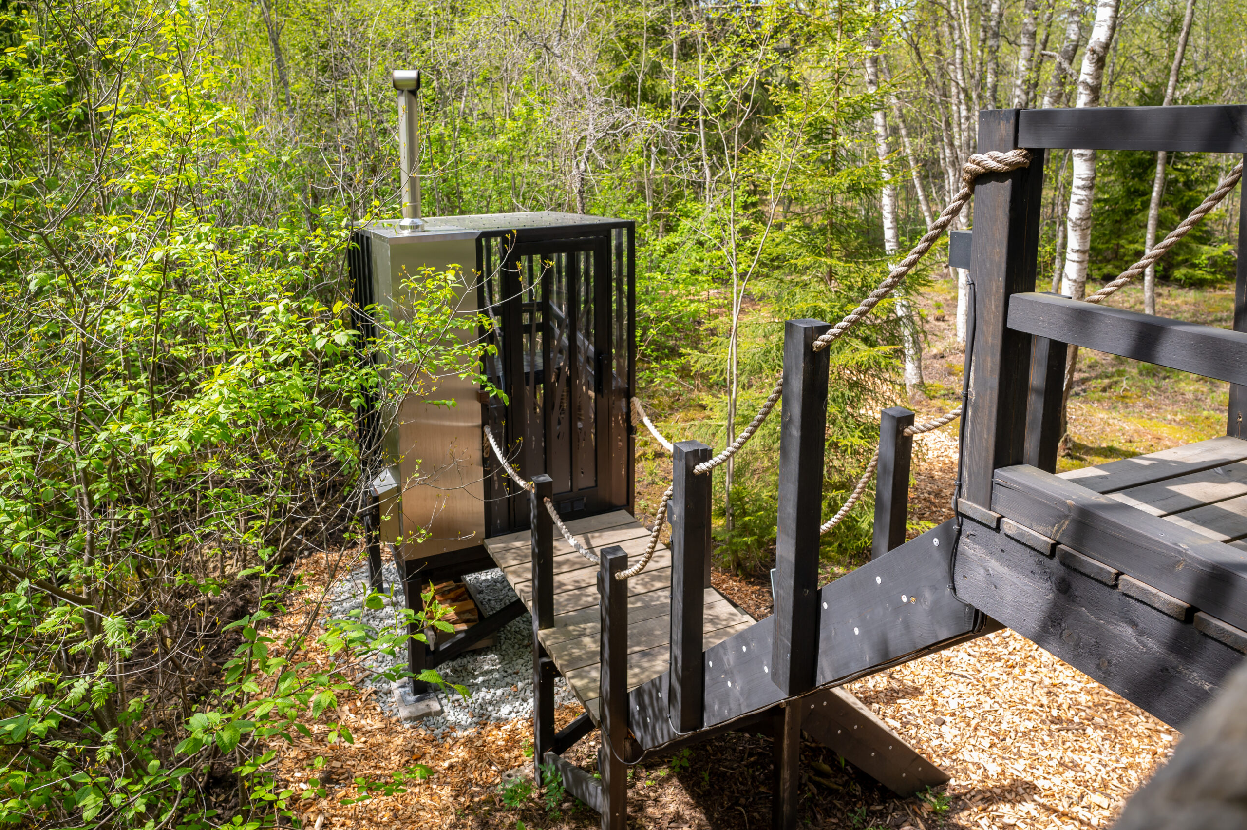The sauna is intended for people who are looking for special experiences, it is probably not suitable for people who are afraid of heights. The wood sauna is heated and it is always warm and pleasant here.