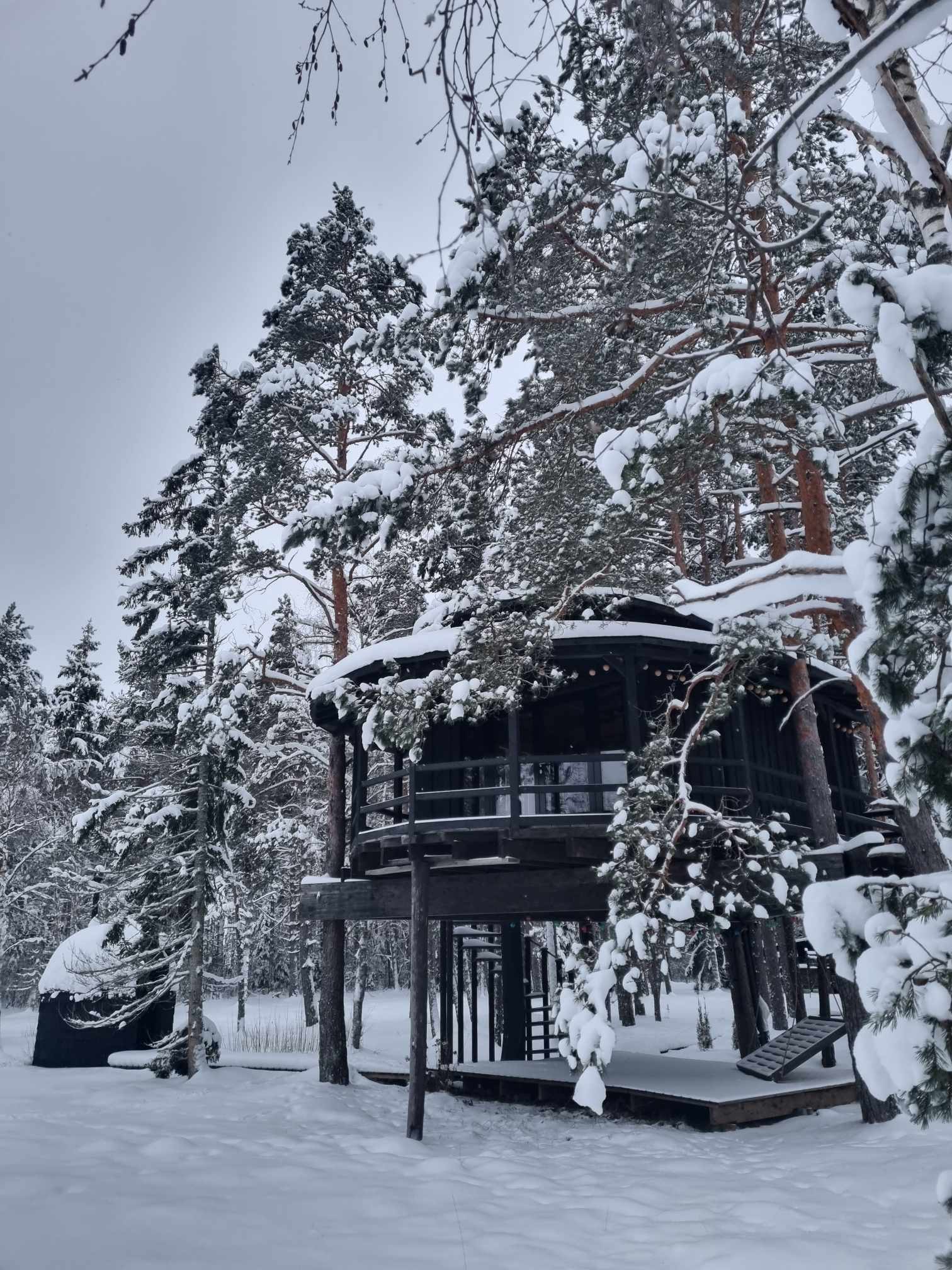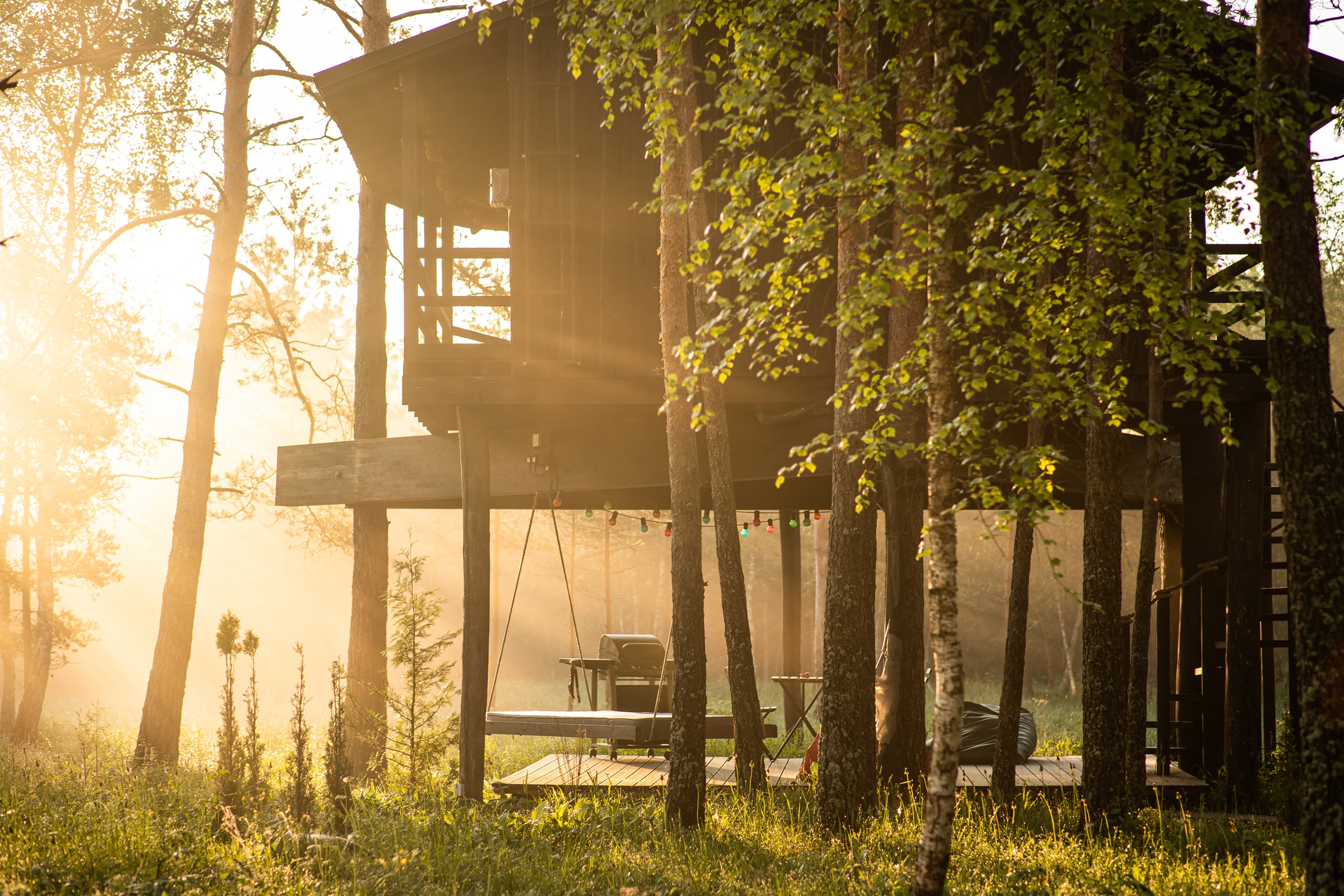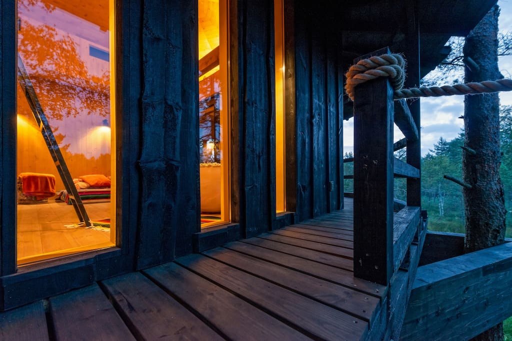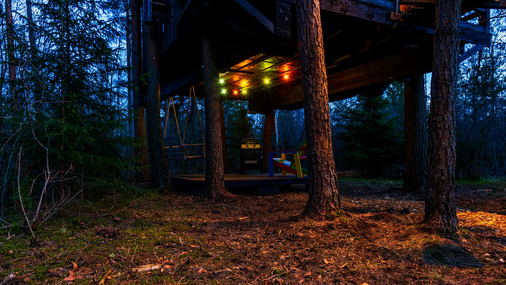 Have you ever enjoyed waking up to a sunrise in a treehouse? Now it's possible. The treehouse features a large terrace with a panoramic view facing the sunrise. It's simply a wonderful place to relax, enjoy nature, play games, and do something fun together. Just be truly together. It's a great spot to forget about screens and other distractions. The treehouse has heating and air conditioning. There is also a sauna next to your house for your private use.