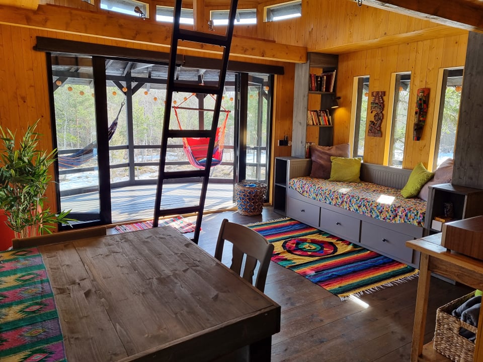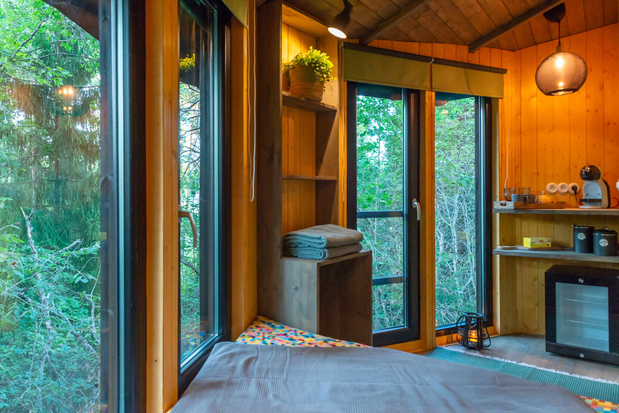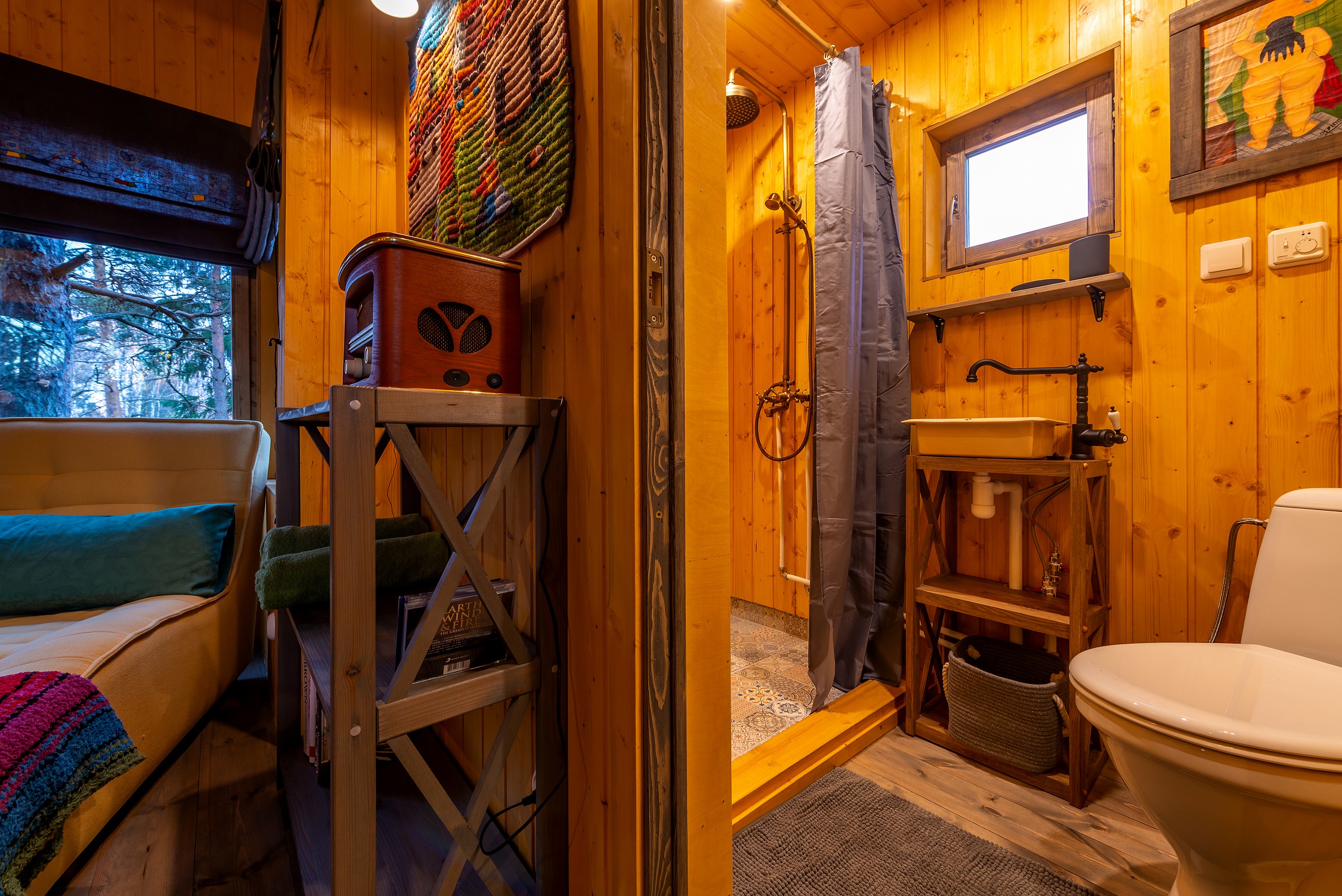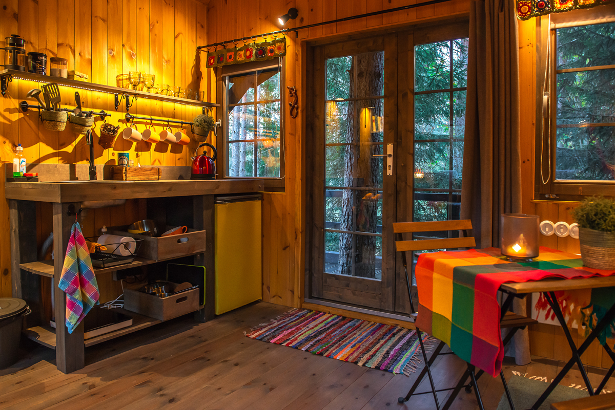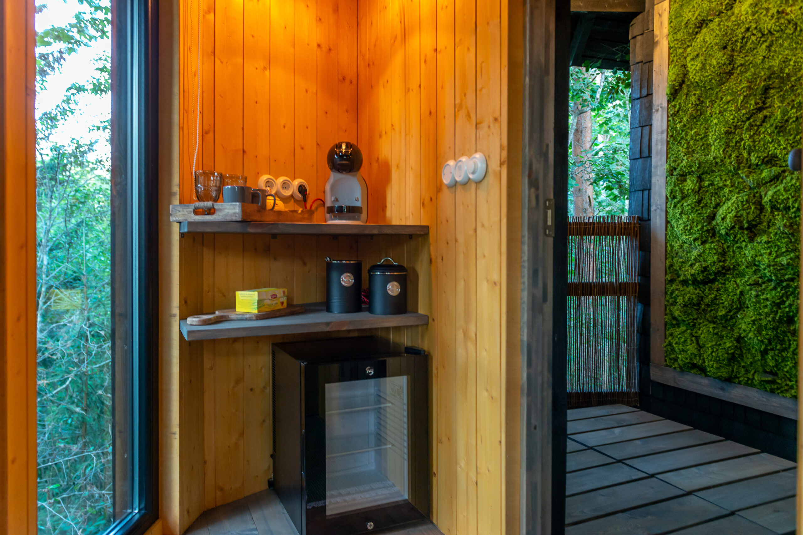 Have you ever enjoyed waking up to a sunrise in a treehouse? Now it's possible. The treehouse features a large terrace with a panoramic view facing the sunrise. It's simply a wonderful place to relax, enjoy nature, play games, and do something fun together. Just be truly together. It's a great spot to forget about screens and other distractions. The treehouse has heating and air conditioning. There is also a sauna next to your house for your private use.