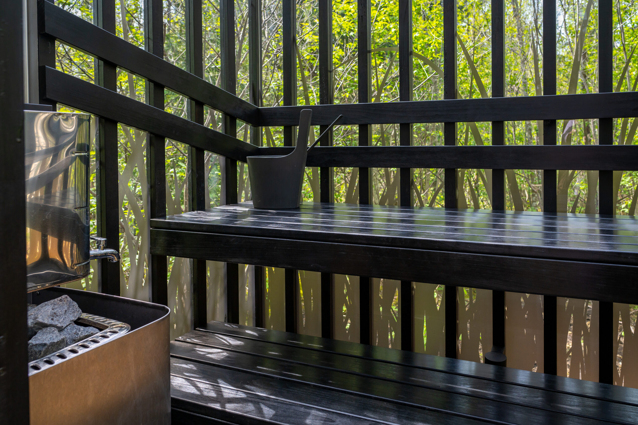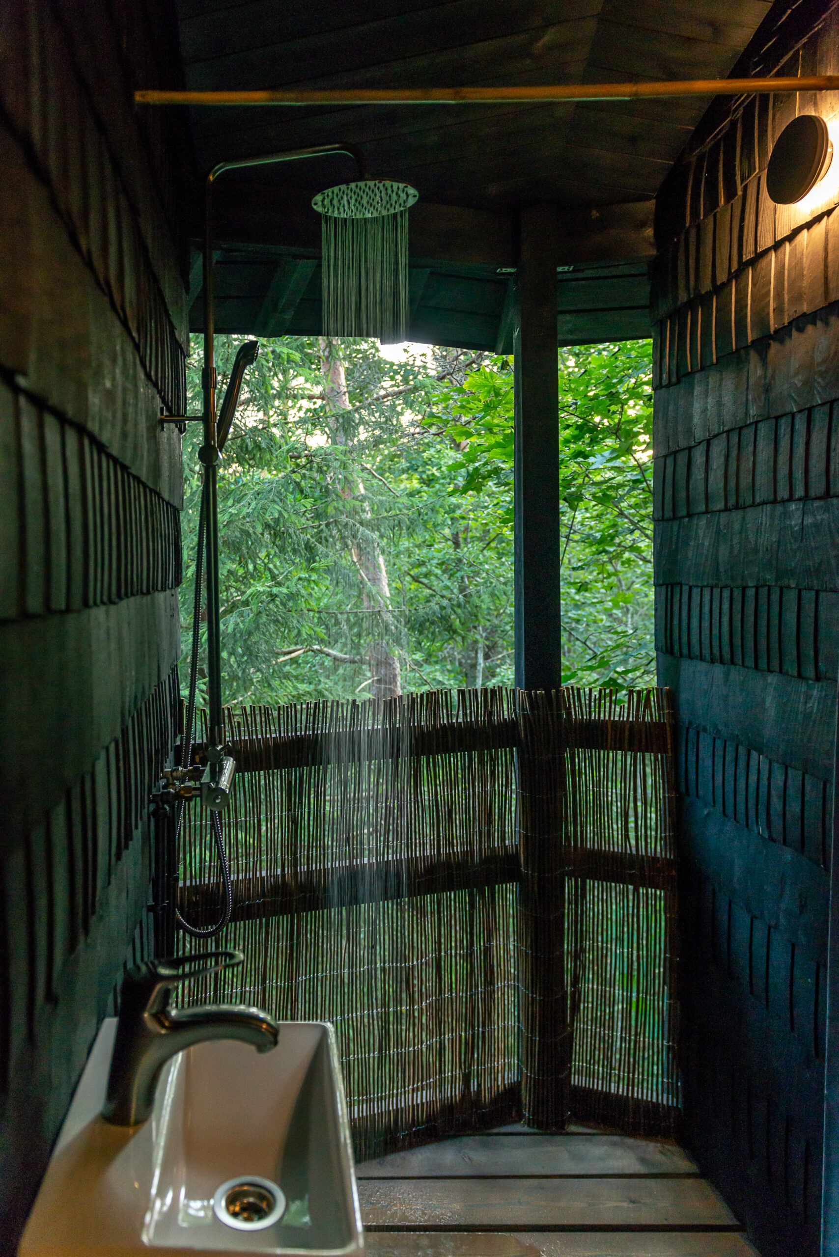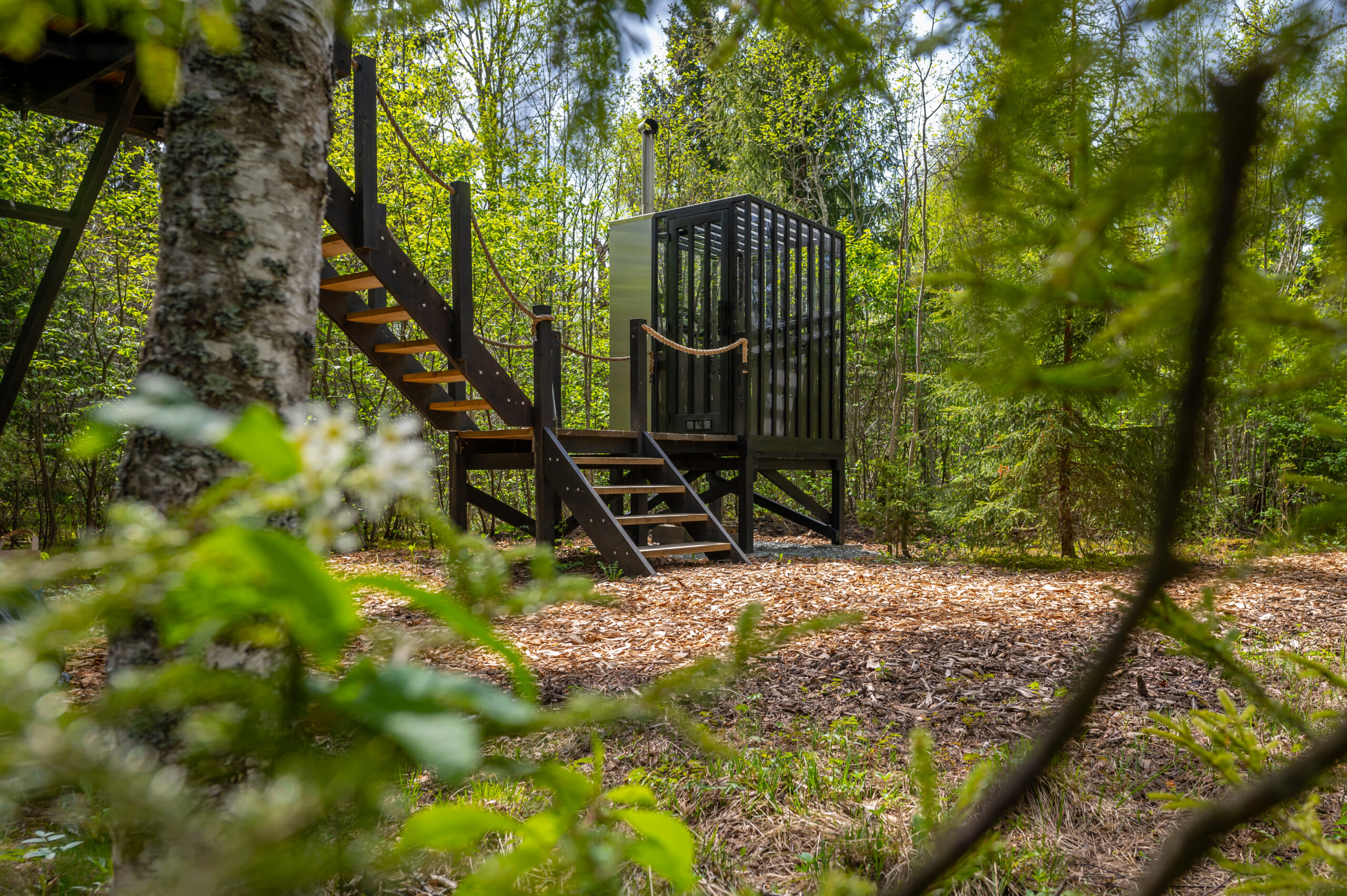 A completely unique opportunity to enjoy the pleasures of a sauna at a height of 4m on a tree and take a warm shower in the open air. Such an opportunity does not come along very often in the world.